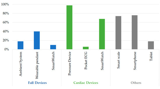 The technological devices were identified based on the type of monitoring (manual or continuous), device (environmental, wearable, portable, etc.), and user compliance during usage. The selected technologies can be adapted to the functional abilities of the elderly, being customisable in the interfaces and settings.