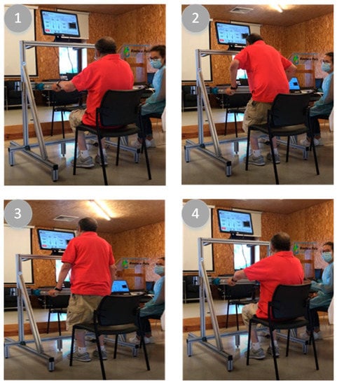 Example of experimental tests carried out by the volunteers from the continuing care unit: (1) Sitting; (2) Standing up; (3) Standing; (4) Sitting down.