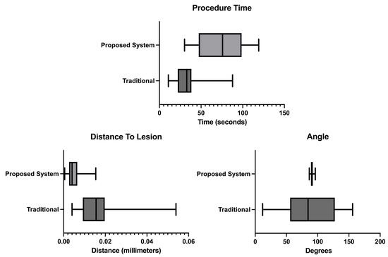 Procedure time, distance from the needle tip to the lesion and angle measurements.