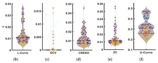 Additionally, we analyzed five different methods for estimating the regularization parameter at a given time instant, namely (1) the L-Curve method [18,19], (2) the Generalized Cross-Validation (GCV) method [20], (3) the Composite Residual and Smoothing Operator (CRESO) method [21], (4) the Zero-Crossing (ZC) method [22], and (5) the U-Curve method [23].