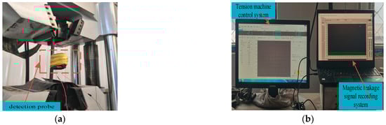 As shown in Figure 16, the experimental device was mainly composed of a tensile testing machine, X70 ferrimagnet, software control system, and signal acquisition system.