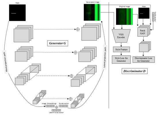 - By combining the mask embedding vector with the latent noise vector and the discrete fine-grained guide labels, an improved conditional mask-to-image translation GAN was proposed. Synthetic images with large intraclass diversity such as defect size, shape, position, thickness, brightness, and background can be generated conditionally.