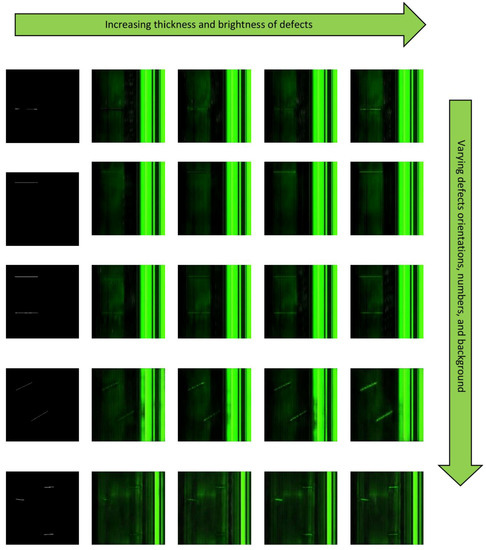 - Zhang, G.; Cui, K.; Hung, T.-Y.; Lu, S. Defect-GAN: High-Fidelity Defect Synthesis for Automated Defect Inspection. In Proceedings of the 2021 IEEE Winter Conference on Applications of Computer Vision (WACV), Virtual, 5–9 January 2021; pp. 2523–2533. [Google Scholar] [CrossRef]