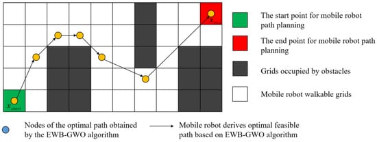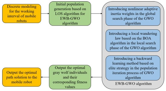 Workflow for mobile robot path planning based on EWB-GWO algorithm.