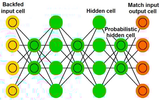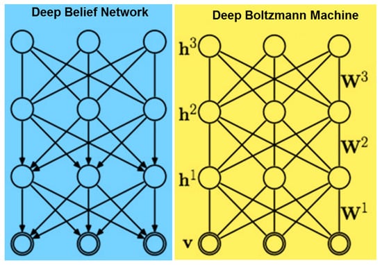 The deep learning approach is used for stacking shallow architectures and achieving robust results due to increasing depth of the model. The deep belief networks are composed of Restricted Boltzmann Machines (RBMs). In deep networks, in place of using a single layer of RBM, they are stacked on top of each other, called a DBN as shown in Figure 4 [38]. The term ‘belief’ in mathematics might create confusion. Commonly, a belief is something that one has faith in, such as a deity, or science, or trusting astrology, etc. However, in DBNs, the term ‘belief’ expresses the knowledge that one may have a flawed subjective conclusion about the objective indication [39]. A DBN is also a type of deep learning-based deterministic neural net and chooses weights in a smart way according to the activation functions as shown in Figure 5.