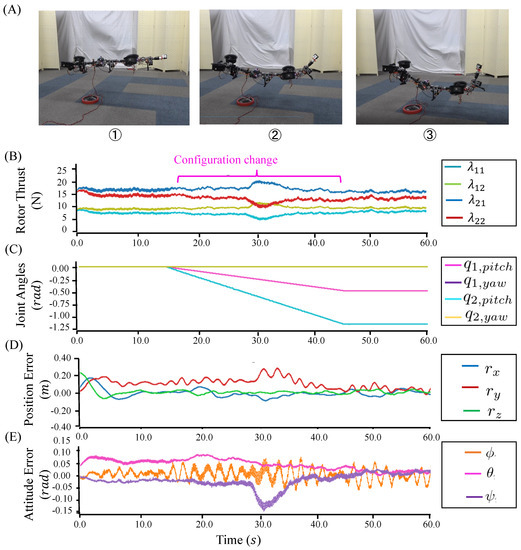 - Zhao, M.; Shi, F.; Anzai, T.; Okada, K.; Inaba, M. Online Motion Planning for Deforming Maneuvering and Manipulation by Multilinked Aerial Robot Based on Differential Kinematics. IEEE Robot. Autom. Lett. 2020, 5, 1602–1609. [Google Scholar] [CrossRef]
