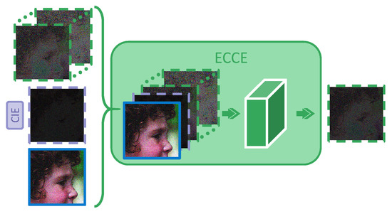 - The ECCE module outputs the Enhanced Error Image by taking , , and of the previous iterations into consideration. In this way, the error and residual can be accurately predicted with high robustness to supplement the following reconstruction more efficiently (Section 3.3).