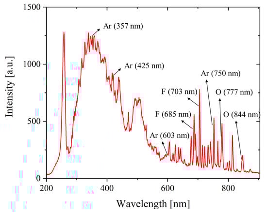 - Kim, D.H.; Choi, J.E.; Hong, S.J. Analysis of Optical Emission Spectroscopy Data during Silicon Etching in SF6/O2/Ar Plasma. Plasma Sci. Technol. 2021, 23, 125501. [Google Scholar]