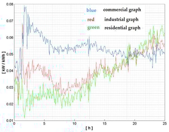 It can be observed that the most representative class of consumption is C5 (50% of the total consumer number), the least representative being C2 (only 3.5%). The load-type profiles correlated to every cluster (consumption class) are depicted in Figure 17, Figure 18 and Figure 19 and the consumer distribution is presented in Figure 20.