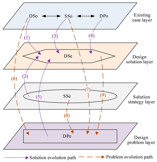 The product design solution evolution process based on problem–strategy–solution (PSS) iterations constructed based on the mapping relationship among design problem, solution strategy, and design solution is shown in Figure 3, and the evolution paths of the three together form the design iteration and evolution process.
