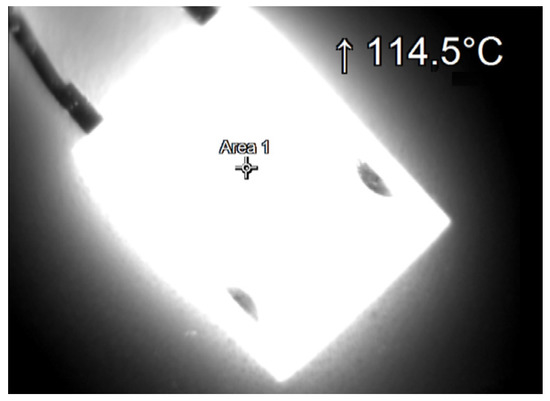 During the tests, thermographic measurements of the diode case were made for the several selected values of the power Pj dissipated in the die. The thermograms recorded during the measurements are shown in Figure 6, Figure 7, Figure 8, Figure 9, Figure 10 and Figure 11.