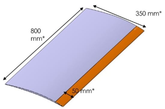 The foreign object damage panel (FOD panel) used in our case study is a representative substructure of the fan blade chord of dimensions 800 × 350 × 50 mm as shown in Figure 2 and it is used in a V&V (verification and validation) process by the engine OEM (original equipment manufacturer) to evaluate the designed and manufactured hybrid material regarding bird strike and its induced damage. The FOD panel is considered in the European project MORPHO (H2020 EU Project) [].