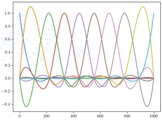 In our work, the number of functions was a hyperparameter of the problem and could be adjusted to obtain the best compromise between underfitting and overfitting, through means such as a cross-validation. Figure 8 shows an example of the piecewise cubic basis functions for functions in the interval [].
