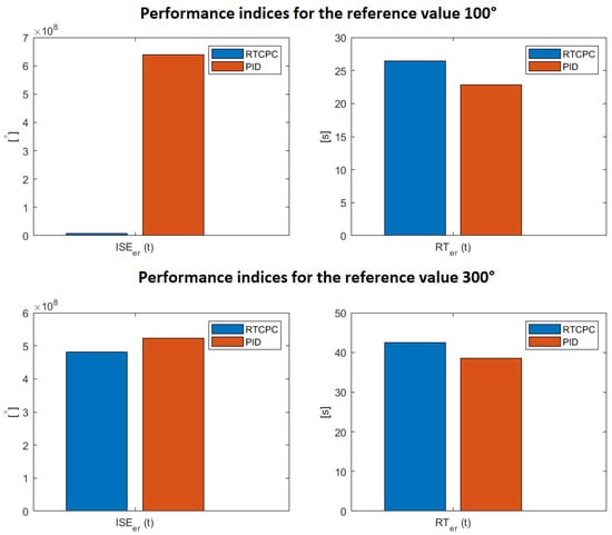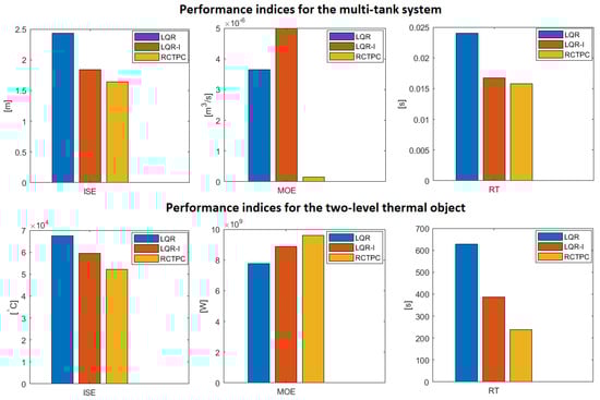 The results of the simulation studies concerning the temperature control of a two-level thermal object in time domain are presented in Figure 5. Subsequently, other performance indices have been analyzed in the next section.