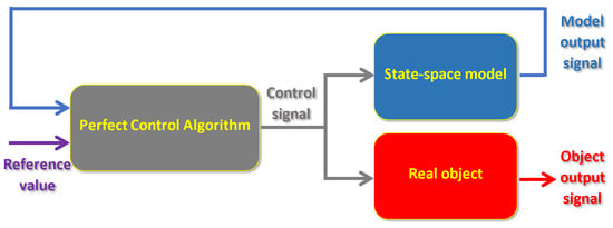 The paradigm of designing the “ideal” control in modern automation systems has remained the same for decades. Designers and scientists constantly address inconveniences regarding fulfilling exorbitant quality indices related to the accuracy and dynamic properties of the control process. Most approaches focus on obtaining an “optimal” solution, i.e., a consensus between the efficiency and the acceptable energy consumed by the aforementioned system [,,]. This approach leads to many problems in the context of minimizing/maximizing multi-criteria quality indices [,,,]. Moreover, often the optimization algorithm itself exceeds the computational capabilities of the system on which the target control system is to be implemented in, which opens the possibilities for the artificial intelligence systems (AI) [,,,,]. However, an alternative seems to be solutions that, from the set of numerous performance indices, focus only on the one parameter, e.g., accuracy, and regardless of the others, they are designed to keep the system in a given state (even at the expense of high control energy) [,,]. The result mentioned above seems to be trivial, but it can make the plant independent of the entire machinery of optimization research or of implementing the AI. One of the considered approaches is the Continuous-Time Perfect Control (CTPC), which fits into the paradigm of the Inverse Model Control (IMC) systems []. The aforementioned perfect algorithm, developed for both discrete- and continuous-time systems, has already been supported by numerous publications, which confirms its significant implementation potential [,,,]. The significant merit involves obtaining a reference value in an extremely short time. On the other hand, it requires high-energy injection, which means that it may not be feasible for some class of systems, especially those with high inertia. Nevertheless, studies have shown that, in non-square plants, it is possible to reduce the said energy injection even up to 80% in the context of an appropriate choice of so-called degrees of freedom emerging in a properly selected inverse []. Moreover, it is possible to select good control parameters for the selected operating point while maintaining low energy consumption and high accuracy [,,,,,,]. However, the reduction mentioned here, even at the level of ten percent, may not be sufficient for some systems. Therefore, the main goal of this paper is to introduce a new approach that makes it feasible to use the perfect control algorithm in real-life tasks. For this purpose, apart from theoretical considerations, a thermal object and a multi-tank system have been investigated by means of simulations. Furthermore, a real experiment has been carried out on a sensor-aided servomechanism. Let us observe that the preliminary studies have shown a possibility to obtain the inverse model control-related sensor-supported measurement system toward the practical implementation. Henceforth, the perfect control-originated maximum-speed and maximum-accuracy behaviors can outperform the properties of classical control methods according to different performance indices. This merit is effectively presented throughout the manuscript.