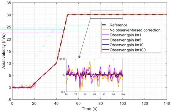 LQR control is used as a benchmark controller in this section with and diag(0.0011, 0.001), and uses the scenario of Figure 12, where all observers have the same observer gain of 100 (except AVSMO which uses a gain of 50 to avoid chattering), to make the comparison favourable for alternative observers that did not exhibit unusual spikes or substantial noise in this case.