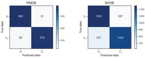 The creation of publicly available datasets, such as the UNBC-McMaster shoulder pain expression archive database [14] and BioVid Heat Pain Database (BVDB) [15], significantly increased the number of new ML models in the scope of automated pain recognition. Cited numerous times, the BVDB induced pain-inducing heat stimuli with varying intensity. While applying four calibrated heat temperatures (called ) corresponding each to a different pain level, the physiological signals Electromyogram (EMG), Electrocardiogram (ECG) and Electrodermal Activity (EDA) were recorded. Usually, pain recognition tasks are then built in a binary way, distinguishing between baseline data associated with no pain () and data associated with a certain pain level. Because it consistently led to the best classification results, the task vs. , i.e., “no pain” vs. “high pain”, was investigated intensively in the past. Table 1 summarizes previously published results achieved on the BVDB. A more detailed description of the dataset can be found in Section 2.1.2.