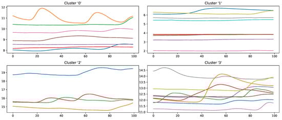 Figure A4 visualises the Elbow method to find the proper amount of clusters for the PMDB. An arbitrary number of cluster sizes is plotted against the sum of squared distances of samples to their closest cluster centre [58]. The elbow of the graph is used to find the optimal number of clusters. For the given data, the optimal number of clusters was four for the samples of the class “no pain” and “high pain”.