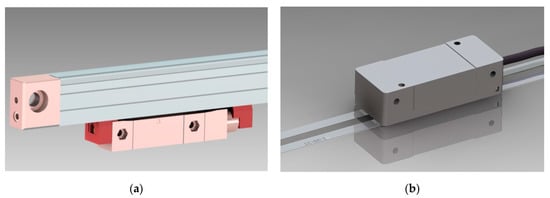 From the perspective of working principles, the smaller the mounting distance between the reading head and main scale, the higher the optical signal amplitudes, and the easier it is for subsequent electronics to process analog signals. Nonetheless, such a requirement is only applicable with an enclosed-type optical linear encoder, wherein the reading head and main scale are connected by mechanical structures, as shown in Figure 1a. On the other hand, the reading head and main scale are independent parts in open-type linear encoder systems and are installed separately on different parts of the equipment with relative motions. With the rich variety in high accuracy machines and multitudinous mounting conditions for open-type optical linear encoders, ensuring all mountings are in perfect positions in all scenarios would be unrealistic. Under some circumstances where the mounting gap between the reading head and main scale is not within the ideal range, the errors can be multiple times greater than the accuracy of optical linear encoders [] and make other aspects of work to improve the accuracy pointless. Therefore, increasing the mounting gap and tolerance is an important and imminent task.