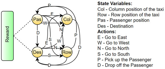 - Dietterich, T.G. Hierarchical Reinforcement Learning with the MAXQ value function decomposition. J. Artif. Intell. Res. 2000, 13, 227–303. [Google Scholar] [CrossRef]
