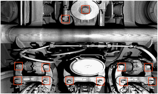 Safety is the main research focus in the railway field [1,2,3]. As vital components affecting the safety of running trains, bolts have always been the key detection units in railways [4]. As shown in Figure 1, bolts play an important role in connecting and fixing various components on the train and are widely used. Traditional detection methods are generally manual troubleshooting of bolt faults by professional train inspectors, but these methods are inefficient, with high costs, human error, and an inability to realize dynamic detection [5]. Therefore, methods using computer vision have been developed. These methods analyze 2D images to judge whether the bolts are missed, damaged, or have other abnormalities, and to improve the bolt detection efficiency and accuracy to some extent [6]. Compared with 2D images, the 3D point cloud contains richer information, such as coordinates [7], which are conducive to the measurement of geometric parameters and has been widely used in many fields, for instance, automatic driving [8], face recognition [9,10], medical diagnosis [11,12], smart cities [13,14], industrial design [15], etc. Up to now, there are a few reports about 3D point clouds detection using the deep learning method in railways. A point cloud identification network based on deep learning is presented in [16], which can be used to identify some components of the railway catenary. However, based on the classification results of a single frame, the network is prone to misclassification in the point cloud connection area, thus causing a negative impact on identification accuracy. Recently, the GTAINet has been proposed to segment the locking wire component [17], which consists of two stages: point cloud classification and point cloud segmentation, but the performance is not satisfactory on scattered point clouds of key components of the train. Obviously, the 3D point cloud has great potential in the field of train safety detection, but it is faced with some problems, such as the unclear boundary of the point cloud connection area of different components, and the poor recognition effect of the scattered point cloud. The bolt, as the train key component, is the focus of detection. Therefore, it is of great research value to realize the recognition and segmentation of bolts in a point cloud of raw train key components collected by laser scanning equipment.