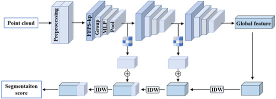 In this paper, a 3D point cloud segmentation network is introduced, whose input is some disorderly, scattered, and noisy point clouds. The overall process is shown in Figure 2.