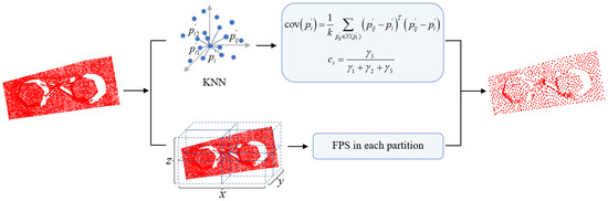 Finally, the combination of curvature sampling and partition FFPS-kp is regarded as the final sampling result, set as , where is the number of points after downsampling and , which is input into the subsequent network for training.