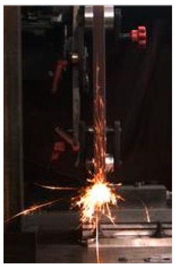 The experimental workpiece was fixed on the Y axis of the machine tool by two mounting holes. After cutting, the workpiece was fed in the Y direction according to the grinding parameters set in the experiment. Spark image collection started after the abrasive belt contacted the workpiece to generate sparks, ending after a grinding stroke ended. Each test piece was ground for 5 strokes, and the length of each stroke was 41 mm.