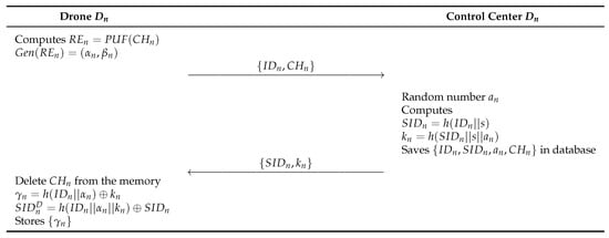 This phase describes that the control center selects an identity and a challenge for the drone before the registration phase. Detailed steps are illustrated in Figure 4. Additionally, this phase is performed via a secure channel.