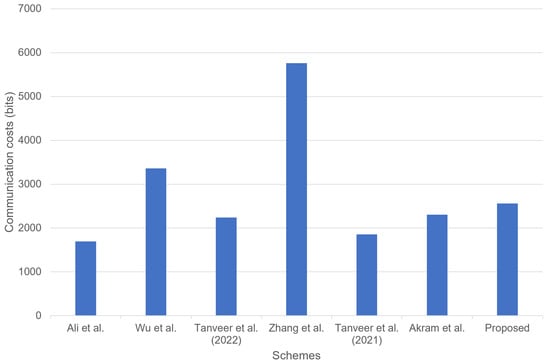 Although our scheme has slightly higher communication costs than Akram et al.’s scheme [4], we offer better security functionalities and efficient computation costs compared to the related schemes [14,17,18,21,24]. Figure 11 illustrates the total communication costs of the proposed scheme and the related schemes.