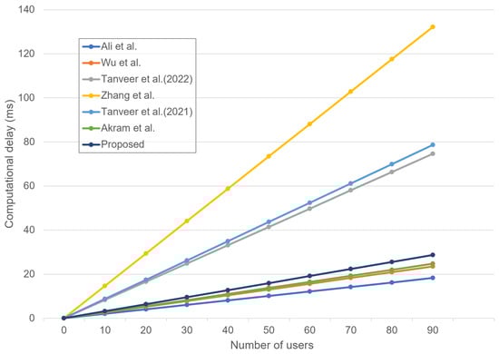 Compared with the proposed scheme and Akram et al.’s scheme, the proposed scheme consumes more computation costs. However, the proposed scheme utilizes the fuzzy extractor and PUF technologies and, therefore, provides much higher security to the entire IoD network systems than [4]. Figure 12 illustrates that the computational cost (delay) increases at the control center with an increasing number of users.