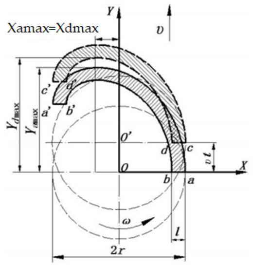 In a single rotation cycle of the brush, if the maximum height of Y for point “” () is less than the maximum height of for point “” (), there will be two points of intersection between the trajectory of point “a” and the trajectory of point “d”. The area located between these two intersections is referred to as the “miss-raking zone”. This miss-raking zone represents a portion of the surface that is not effectively cleaned or raked by the brush. It is important to take the position of the miss-raking zone into consideration when using a brush to ensure a thorough cleaning process.