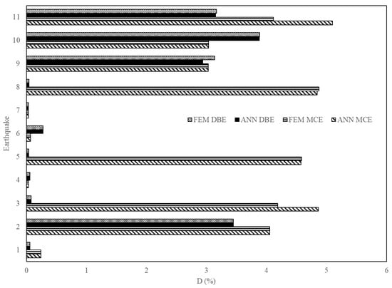- The errors in artificial neural network predictions were less than 2% for the maximum considered earthquake and below 8% for the design-based earthquake with nonlinear time history analysis as a reference.