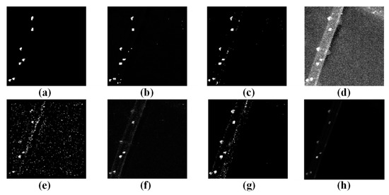 where is an unknown vector, each element corresponds to an element in , denoting its abundance, and the value of is . When is a target pixel, α exhibits a high degree of dispersion. An abnormal target can be distinguished from the background clutter signal by measuring the dispersion degree of . Consequently, this study defined a sparse coefficient divergence index (SCDI) evaluation indicator that can effectively measure the dispersion degree of . We employed this indicator as the weighting factor of the sparse anomaly map to enhance the target signal. The spectral sparse difference index weighting factor can be calculated as follows: