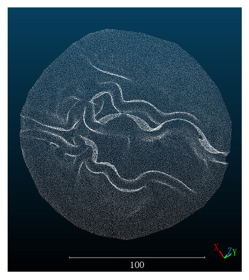 After that, we used the pig stomach point cloud obtained by the 3D scanner as the ground truth. In order to facilitate information processing, increase the computing speed, the point cloud image obtained by the 3D scanner was preprocessed by segmentation and cutting as shown in Figure 6. Moreover, the point cloud image obtained by three methods is registered with the truth value. We use the built-in point cloud registration method in the software CloudCompare. Firstly, the corresponding feature points are manually selected for coarse registration, then the integrated ICP algorithm is used for fine registration, and finally the of registration is calculated. The of the registration results is used to evaluate the error of the three methods. The is calculated as follows.:
