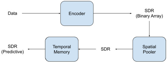 - Cui, Y.; Ahmad, S.; Hawkins, J. The HTM Spatial Pooler—A Neocortical Algorithm for Online Sparse Distributed Coding. Front. Comput. Neurosci. 2017, 11. [Google Scholar] [CrossRef] [PubMed]