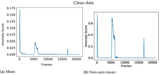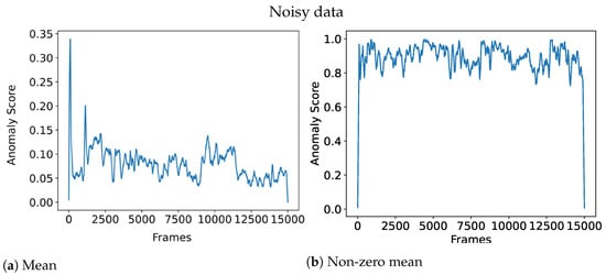 Figure 4 illustrates the effect of an aggregation function for noisy data, where the non-zero mean is rendered useless due to the noise. On the other hand, Figure 5 shows how the non-zero mean gives a clearer anomaly score when the data is clean compared to the noise data which has a more chaotic line.