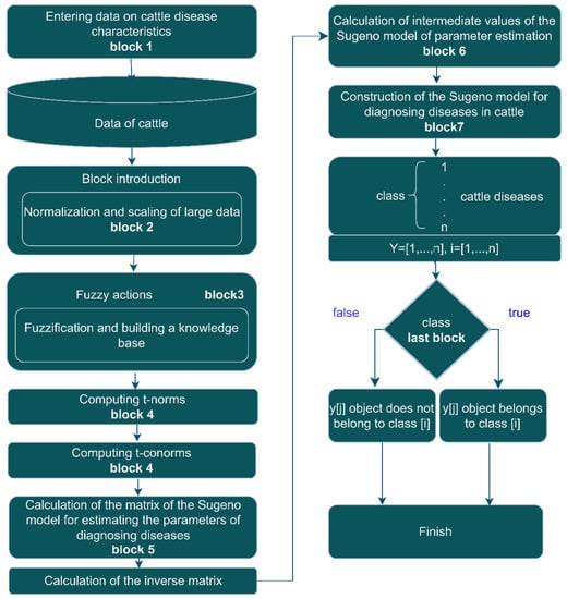 The developed functional diagram for diagnosing diseases in cattle is presented in Figure 2.