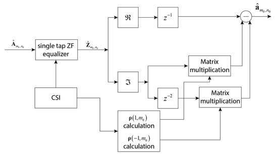 The block diagram of the FBMC-OQAM MIMO equalizer after calculating with internal noise compensation is shown in Figure 5.
