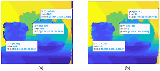 (a) Gaps generated in the depth image due to occlusion, and (b) Depth map after the gaps are filled.