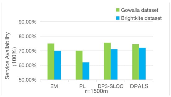 - We propose a Differential Privacy protection Algorithm for Location Semantics (DPALS) to defend against the semantic attack of a single-point location query service. The method uses “geographic indistinguishability” to generate multiple perturbed locations and considers the semantic rank of the location. Based on this idea, we construct an anonymous set of location semantics conforming to the semantic privacy rank, and design a scoring function to select an optimal location from the anonymous collection of location semantics instead of the original location for publishing. Experimental results show that the quality of service of DPALS outperforms the current optimal DP3-SLOC by 7.8%.