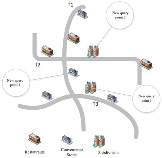 - Yao, B.; Chen, Z.; Gao, X.; Shang, S.; Ma, S.; Guo, M. Flexible aggregate nearest neighbor queries in road networks. In Proceedings of the 34th International Conference on Data Engineering (ICDE), Paris, France, 16–19 April 2018; pp. 761–772. [Google Scholar]