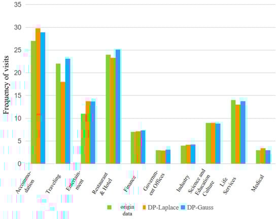 - To address the privacy leakage problem when trajectories are continuously queried, this paper proposes a personalized DP protection method for semantic trajectories that first constructs an anonymous set of trajectories according to the users’ privacy requirements. We build a vector based on the semantic types of the trajectories in the anonymous set and calculate their similarity using cosine similarity to obtain a trajectory that is most similar to the original trajectory. Finally, we introduce an adjustable Gaussian mechanism to add noise that matches the sensitivity of the users’ semantic types to the access frequency of the semantic types in the optimal trajectory, to improve the security of trajectory release and reduce the probability of attackers inferring the users’ location.