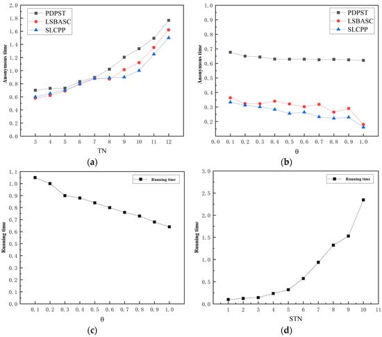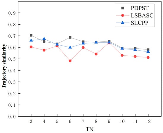 - If the trajectory sensitivity is bigger than semantic trajectory security threshold , and the number of semantic types is greater than , the trajectory will be added to the anonymity set , and if the conditions are not satisfied, continue to execute step (2).