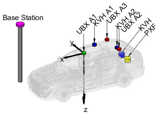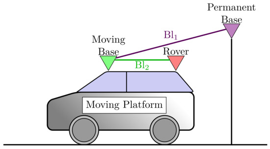 - Position (), velocity () and acceleration () of the Moving Base antenna in Earth-Centered Earth-Fixed (ECEF) Coordinate system;