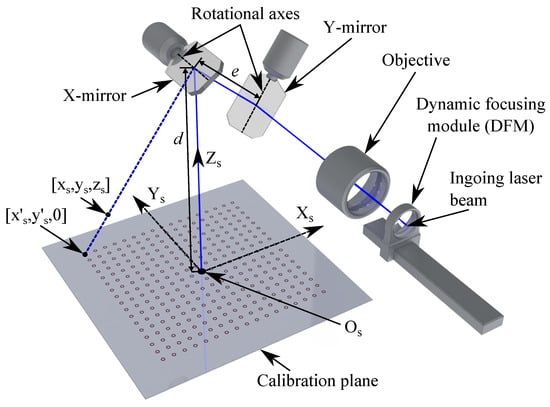 9] calibrated a pre-objective GLS system for laser drilling by applying Lagrange polynomials to obtain correction tables based on experimental data. The proposed method achieved a calibration accuracy with maximum deviations below 0.05 mm in a 2D setup with a limited work plane of 30 × 30 mm