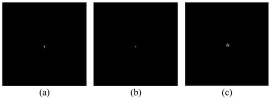 Using the above algorithm model, test results from simulations using image data are shown in Figure 4 and Figure 5. For comparison, we also obtained imaging results from deep learning using the U-net convolutional neural network. The up sampling and down sampling use 3 × 3 standard convolution kernels. Adam optimizer is used for learning. Its learning rate is 0.001 and the batch size is 1. Figure 4 and Figure 5 show the correction effect in the before- and after-refocusing images. The Adam optimizer can more accurately display the position of the target in the refocused images.