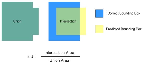 An object detection network is usually composed of two parts, a pre-trained ImageNet backbone and a head used to predict the classes and bounding boxes []. One of the most-representative models in this context is YOLO []. The standard network YOLO has 24 convolutional layers, followed by two fully connected layers. With this, YOLO predicts multiple bounding boxes. First, it splits an image into a grid of cells. Then, it predicts the bounding boxes by a threshold, according to the object’s position in the image [].
