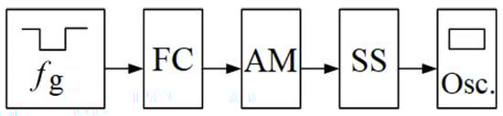 The block diagram of the stand for conducting the physical experiment is shown in Figure 7, where  is the given frequency, FC is the frequency converter Sinamics G120 PM240, AM is the asynchronous motor, SS is the speed sensor, encoder Autonics E40H12-1000-3-T-24, and Osc. is the oscilloscope Rigol DC1042CD2+16.