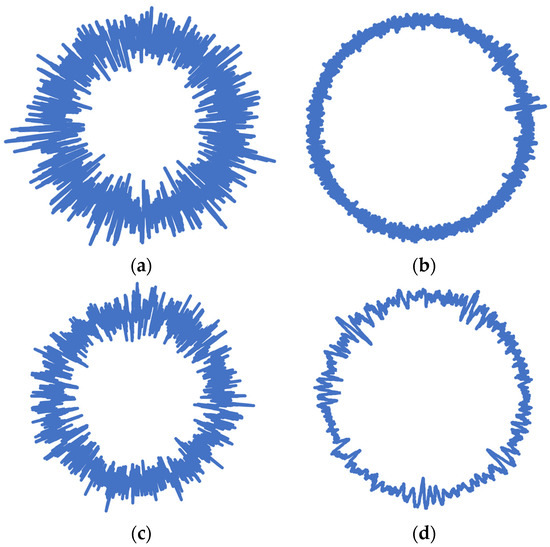 Vibration signals acquired for the four different tire conditions of the pneumatic tire equipped on the test vehicle were stored in the form of radar plots as images. A radar plot corresponding to vibration signals measured under normal tire conditions is presented in